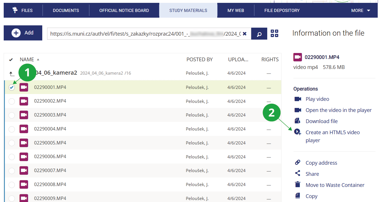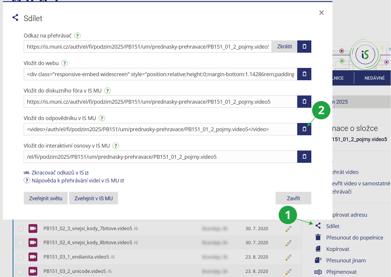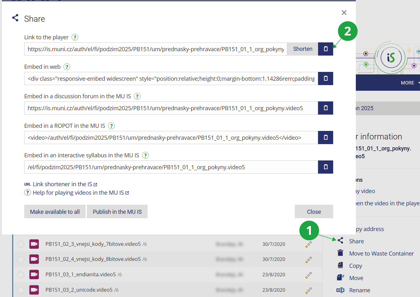 - Quickly change file access so that the video is available to all users within IS VŠEM.